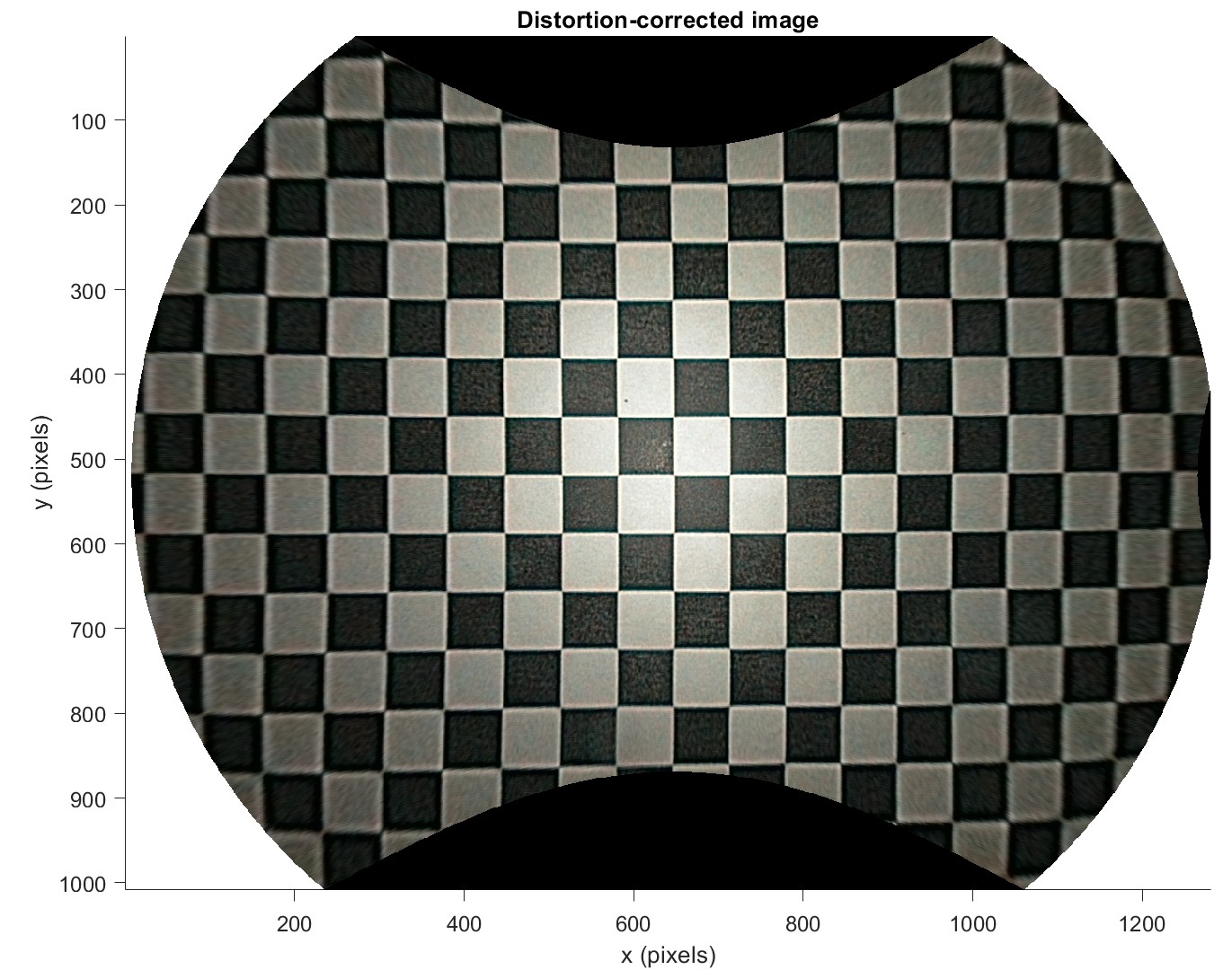 - Distortion-corrected image: A plot showing the distortion-corrected (undistorted) image. The original image is undistorted using the (forward) polynomial fit and resampled to the original image size via linear interpolation.